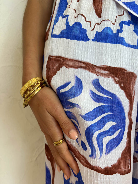 Complete the set with the Camilla and Marc Vigo Heel in Ivory, Arms of Eve Rae Chain Necklace in Gold, Porter Pond Bangle in Gold, Arms of Eve Helios Cuff Bracelet in Gold, Porter Heirloom Bangle 6mm in Gold, Porter Pond Ring in Gold, Porter Wave Ring Set in Gold, and the Reliquia Over and Over Earrings in Gold