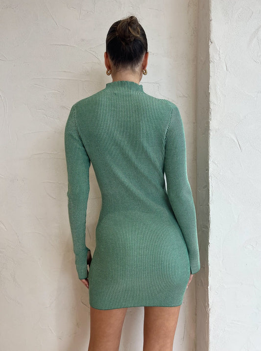 Add a pop of colour to your desk to dusk ensembles with Roame's Reid Mini Dress in Jade Rib.