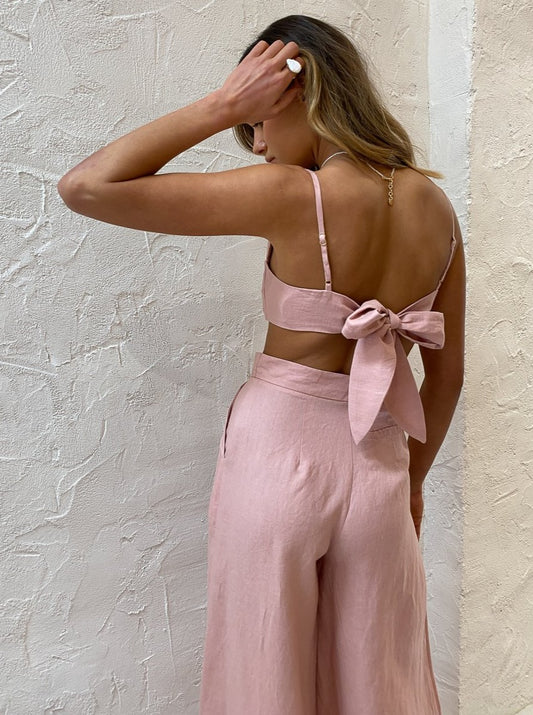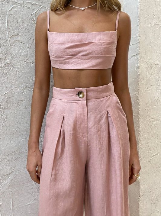 Delicately crafted from a light weight linen fabrication in a romantic dusty rose hue, the Loulou Crop features a flattering square neckline, slim adjustable straps and finishes in a straight cut under bust.