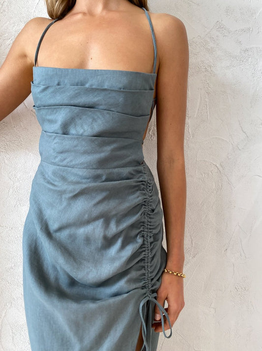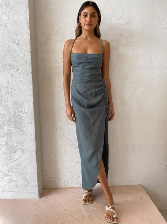 Designed to flatter and form, the Loulou Maxi is crafted from a lightweight and breathable Linen fabrication. Cut with a flattering structured square neckline, it is fitted through the bodice and straight silhouette skirt, featuring an adjustable side gather detail and thigh high side split.