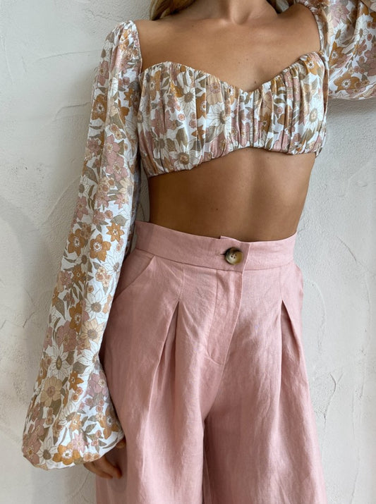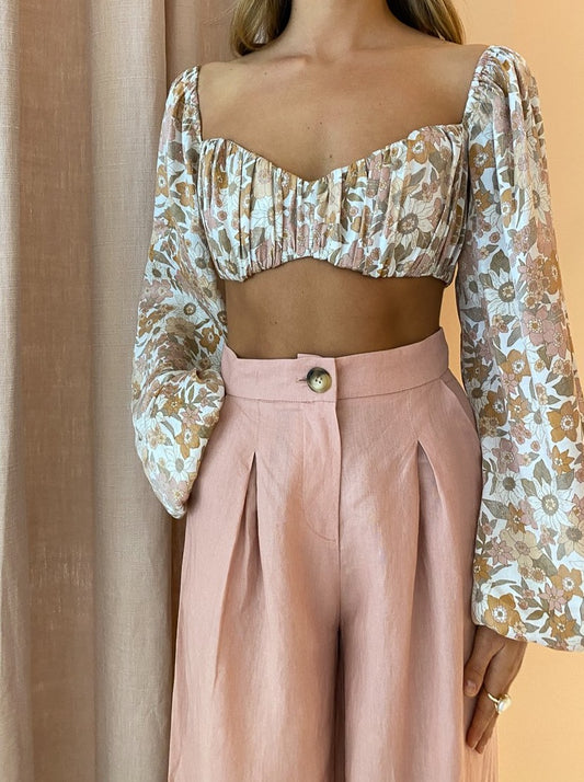 Vertical gathers across the bust add an extra touch of femininity to this sweet crop making it a Coco must have for elevated weekend denim styling, date night dressing and birthday celebrations.