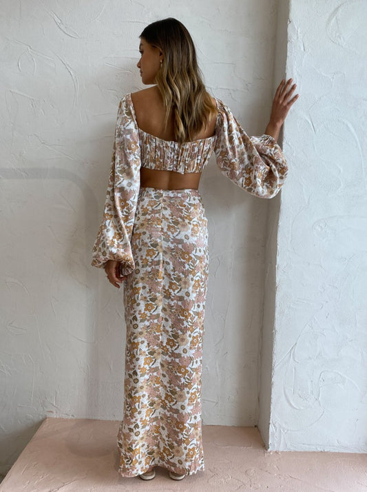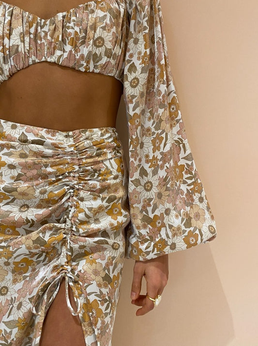 Loved for its adjustable side gather detail, statement split and beautiful floral print, it's a must have piece for the Spring Summer Season carrying you from day to night special Coco moments.