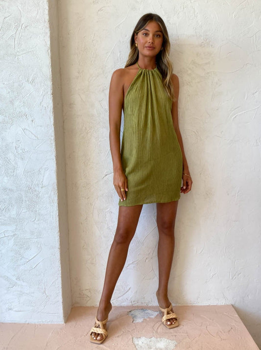 Dance those tropical balmy nights away in the effortlessly glamorous Jaya Mini Dress in Agave by Savannah Morrow.