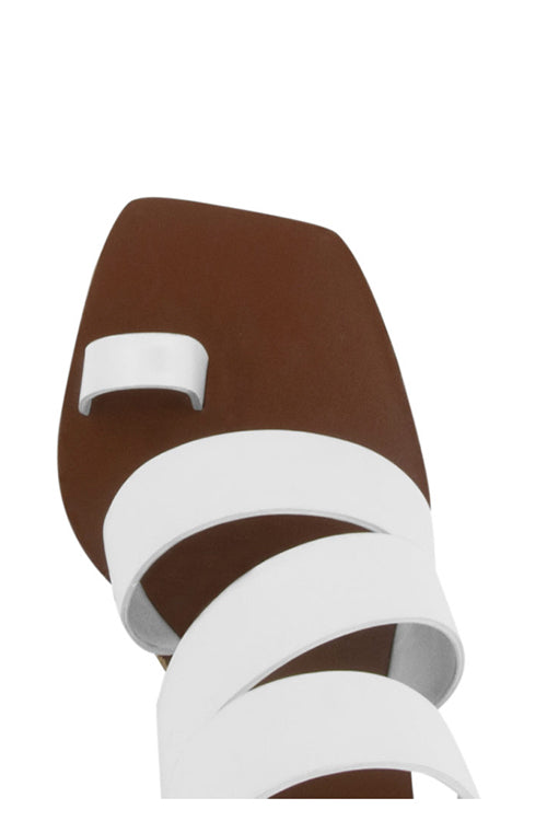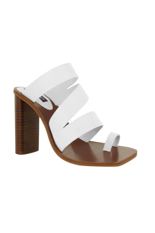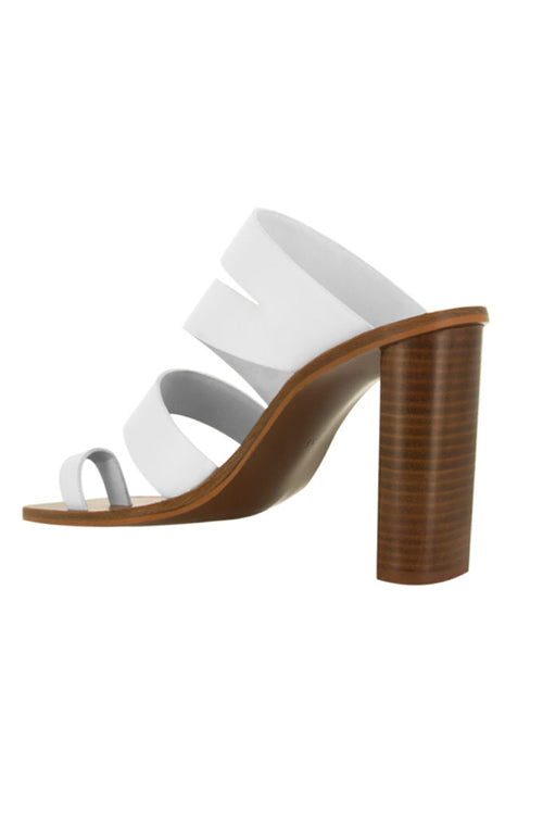 The Yasmina are a strappy leather mule with a cool 10cm wooden heel and man made sole.