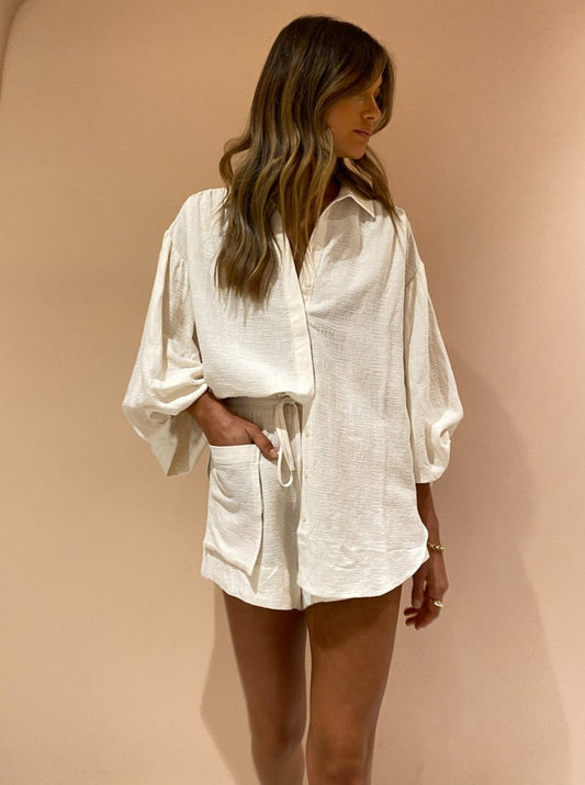 The Bridgette Paperbag Short in Tofu by Shona Joy is a timeless and elevated staple for your Coco wardrobe.
