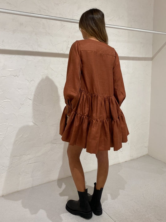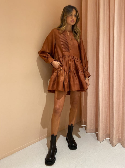 The Shona Joy Elsa Tuxedo Dress in Gingerbread is the a must have everyday staple silhouette that will elevate your desk to drinks wardrobe with a touch of spice.
