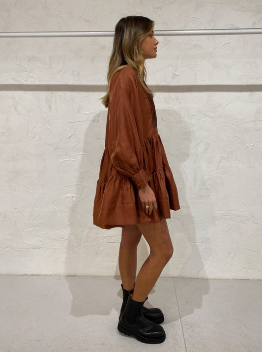 Rich in colour and texture, this mini is crafted from a textured semi-sheer linen blend fabric making it our floaty favourite for trans-seasonal occasions, from the office to weekend garden parties and long weekend getaways.