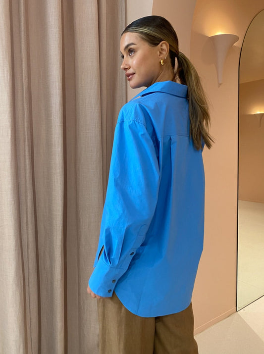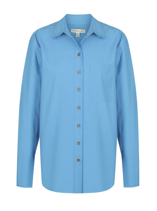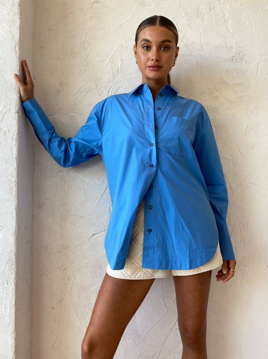Shona Joy Isabella Button Up Boyfriend Shirt in Mediterranean Blue