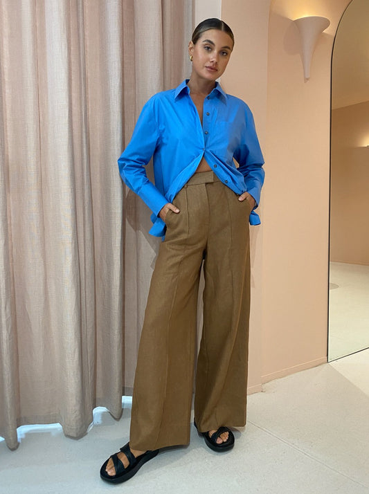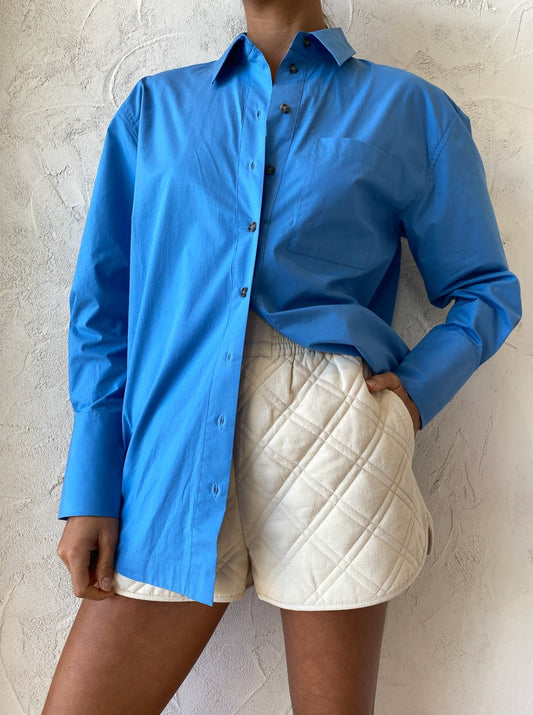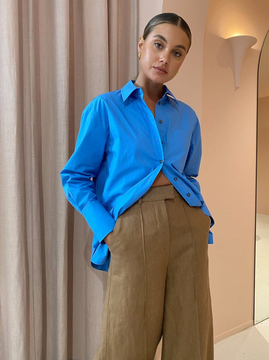 With the refreshing blue hue and luxe oversized silhouette, Coco girls are loving the versatility of this shirt to elevate their everyday dressing.