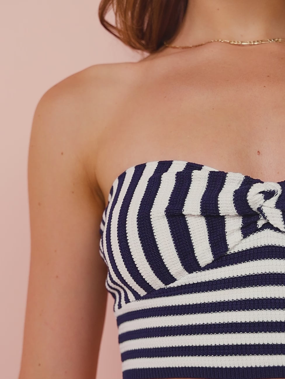 Shona Joy Oceane Strapless Twist Top in Navy/Ivory