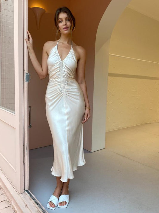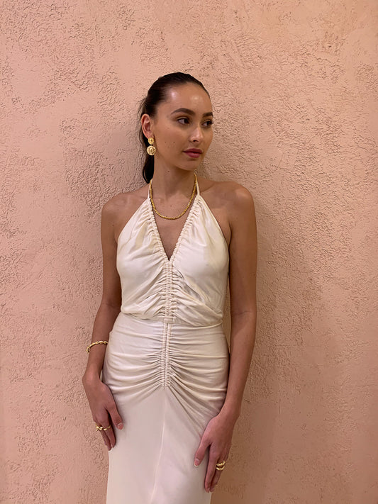 The Shona Joy Sophia Halter Ruched Midi Dress in Cream is a Coco girls favourite.