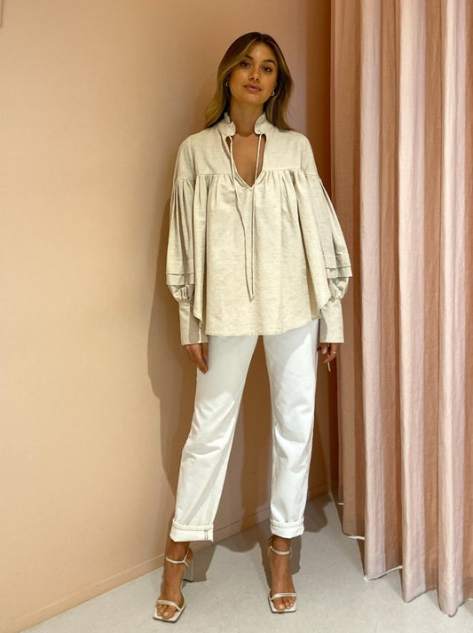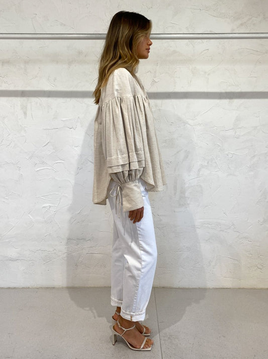 The Tilda Blouse in Oatmeal from Shona Joy adds a statement silhouette with a contemporary touch to our Coco closets.