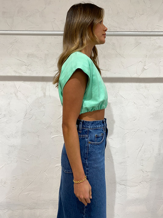 Fully lined, the Emilie is cut from a linen blend for breathability making it our go-to crop paired with neutral denim or the matching Emile Skirt in Apple.