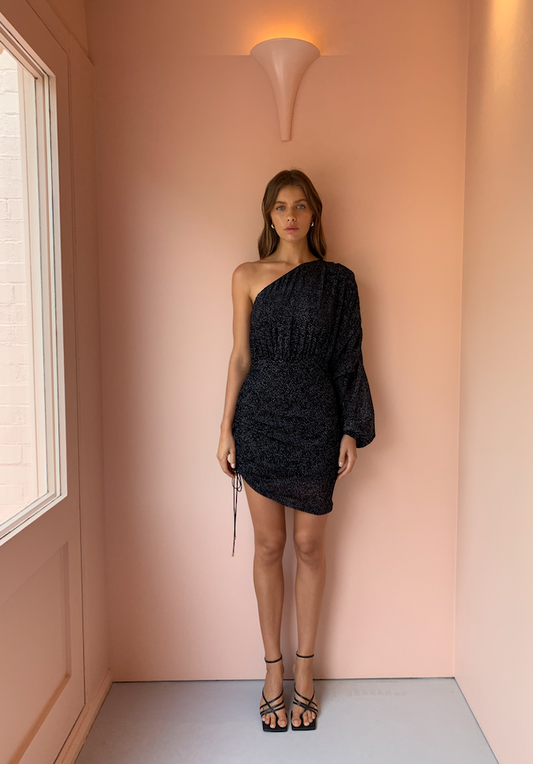 The Significant Other Grace Dress is a one-shoulder mini dress featuring soft gathering detail
