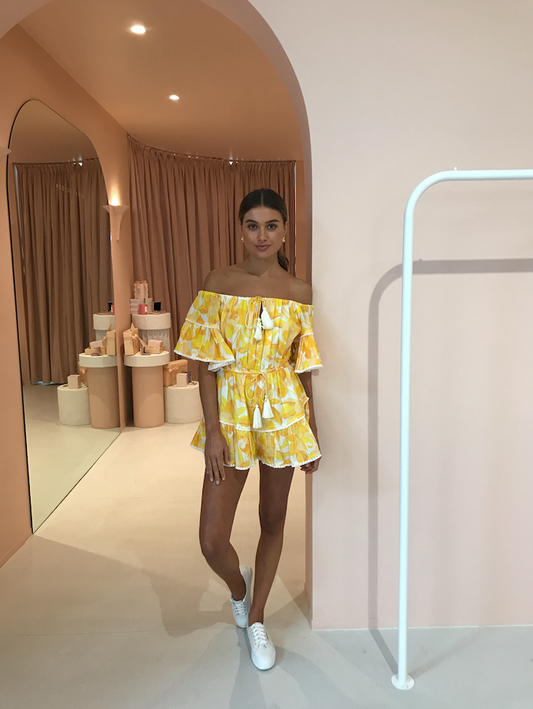 The Isla story in golden floral fabrication feature frill and tassel details. These must-have styles can be worn from day to night.