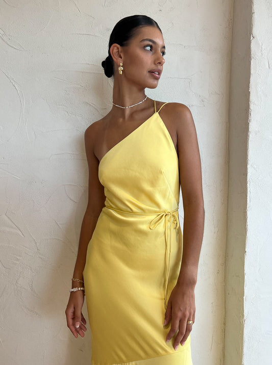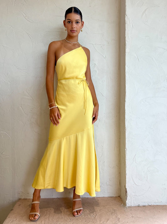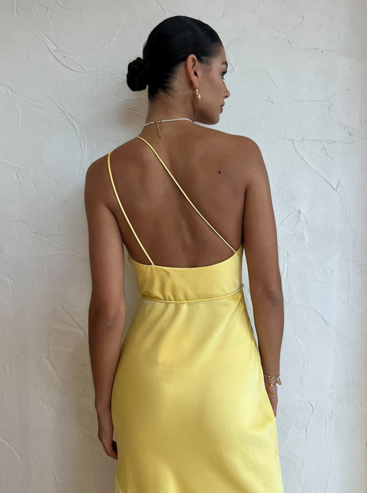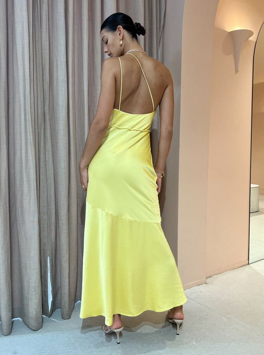 The Significant Other Lana Bias Dress in Lemon is the perfect addition to any refined event.