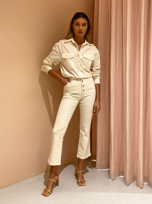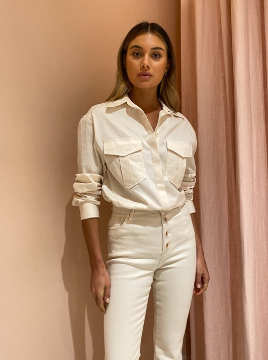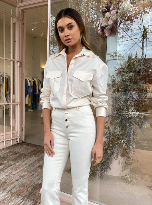 With the relaxed fit and timeless cream hue, Coco girls are loving the versatility of this collared shirt to take them from desk to dusk.