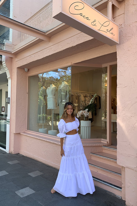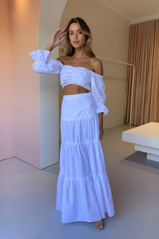 Wear the SIR 'Blair' maxi skirt with the matching 'Blair' off the shoulder top for the ultimate Spring/Summer look. Drape a denim jacket when the weather cools...
