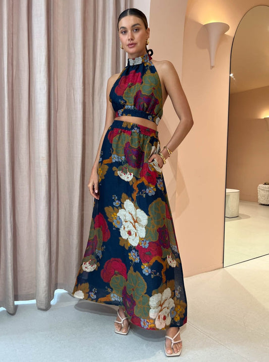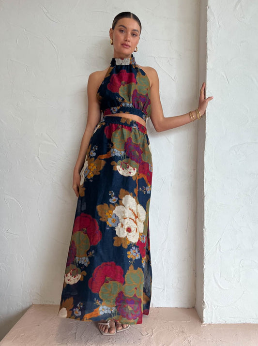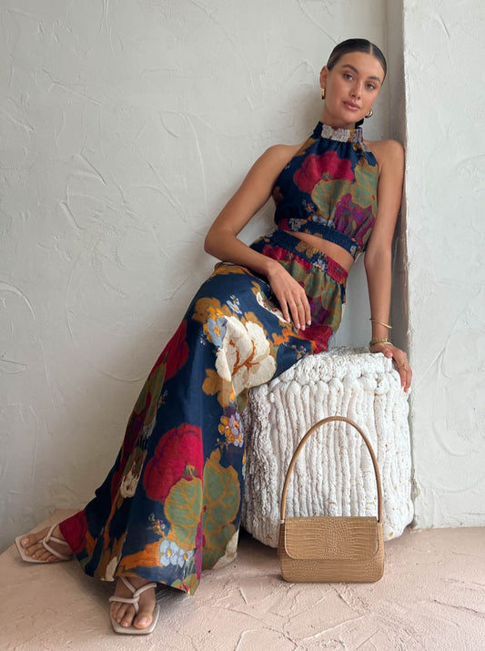 SIR. play homage to vintage nostalgia in the Bonita Halter Top in Garcia Floral Print.