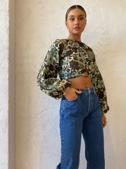 For a chic ensemble compete with the SIR. Constantine Gathered Top in Constantine Print, Alias Mae Lani Boot in Black, Porter Heritage Bracelet in Gold and Porter Tear Drop Huggies in Gold