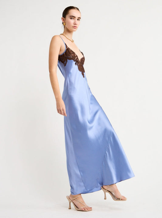 Let elegance take centre stage with the SIR. Danseurs Lace Slip Dress in Bleue.