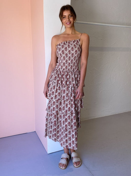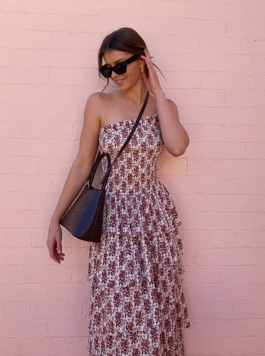 Featuring a beautiful shirred bust with ruffle detailling, this fun and flirty dress is going to be your go-to for girls lunches and weekend brunches.
