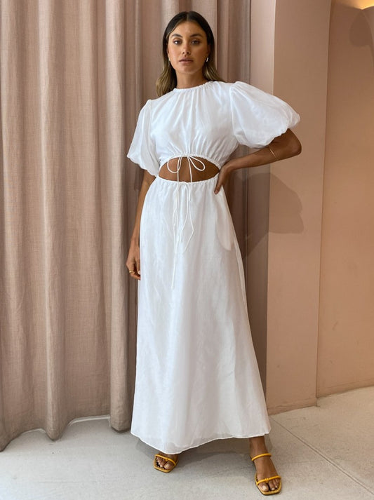 Sir Franc Puff Sleeve Midi Dress in Chalk White