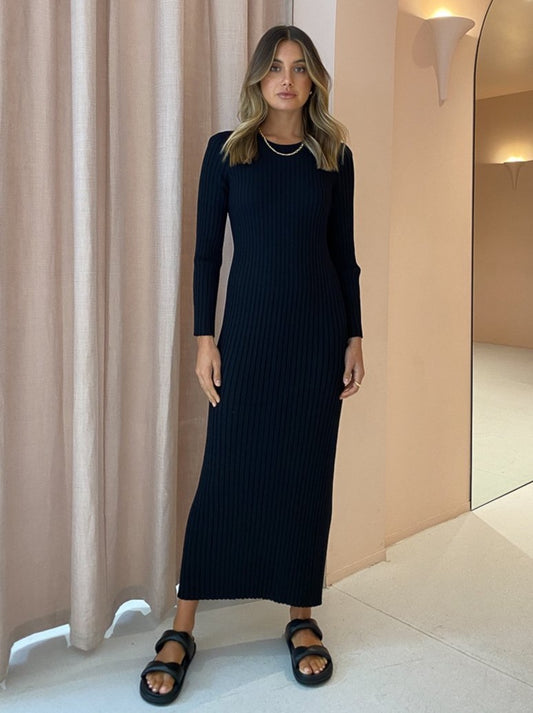 The Lucca Long Sleeve Dress in Black from SIR. is a contemporary take on a signature SIR rib knit cut out silhouette.