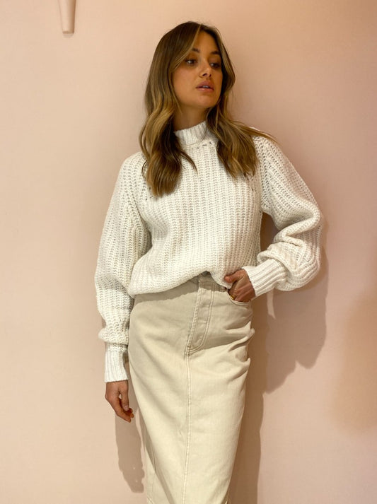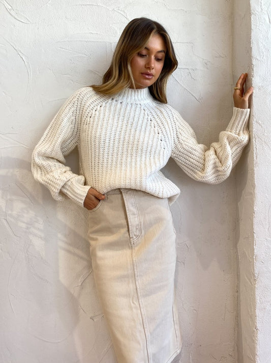 The Seville Raglan Sweater in Ivory from SIR. has us loving classic knit staples for transeasonal dressing.
