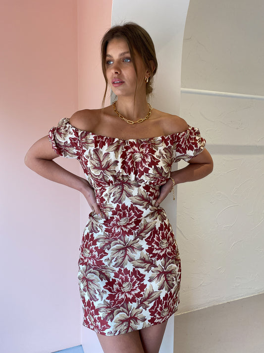 Sir Valetta Off Shoulder Mini Dress in Valetta Print