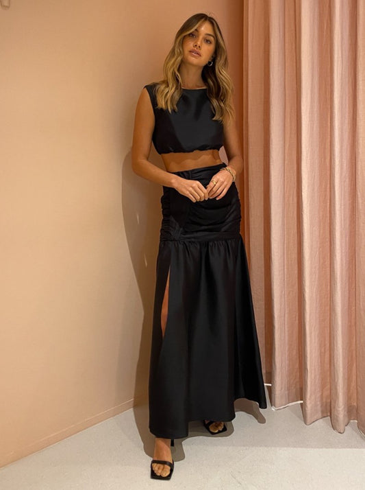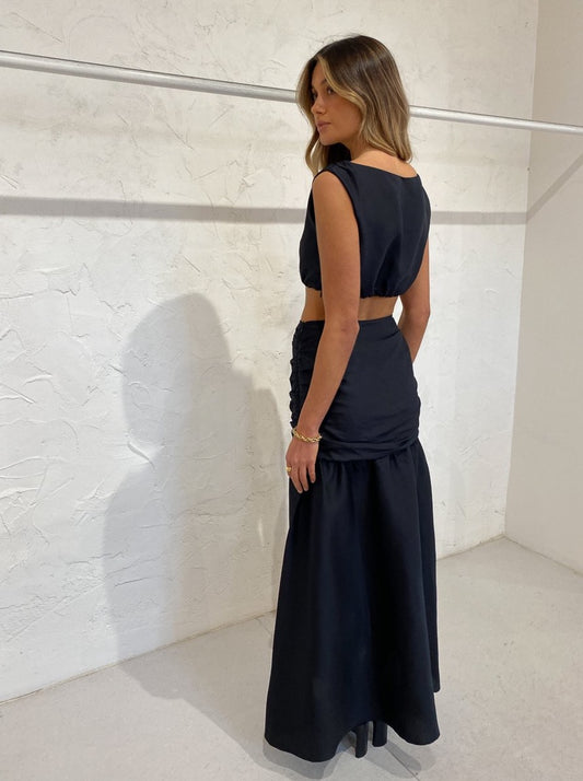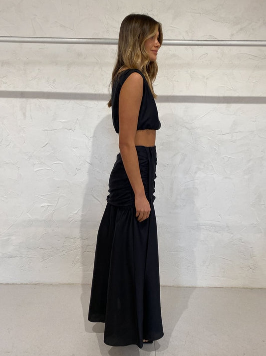 The SIR. Vivienne Maxi Skirt in Black is the must-have dramatic silhouette for those season-less romantic Coco moments.