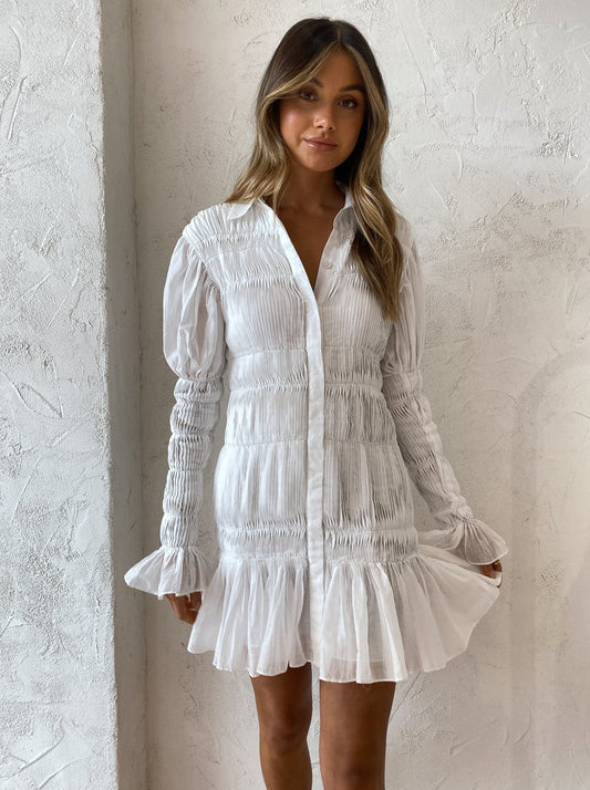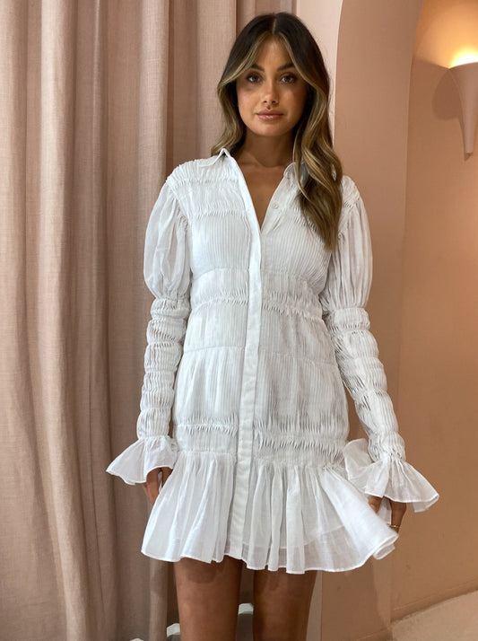 Sir Xanthe Long Sleeve Mini Dress in Ivory