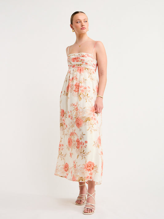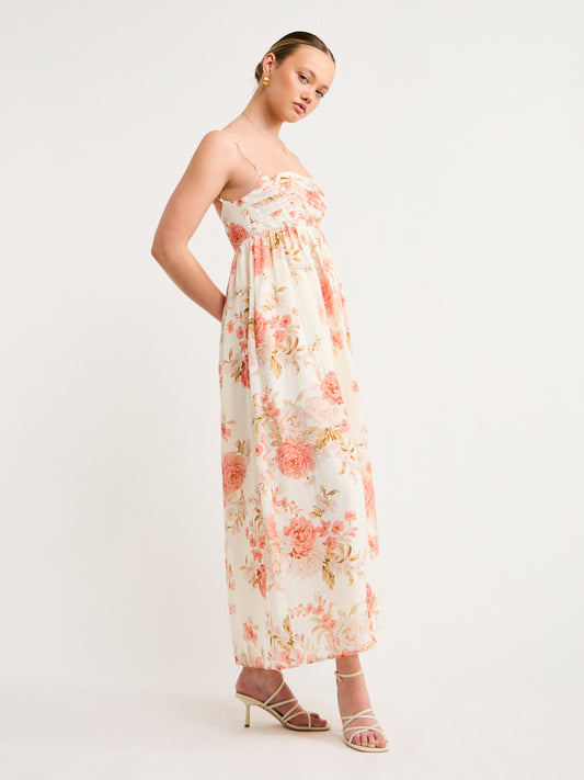 Sofia The Label Mila Babydoll Midi Dress in Rose White