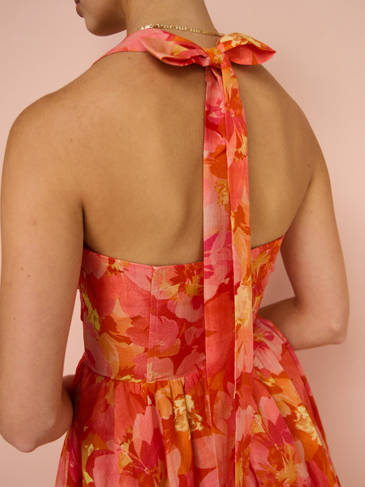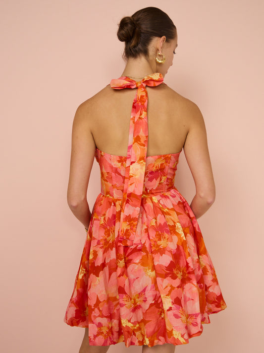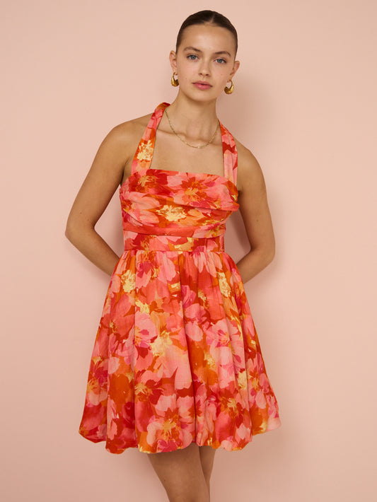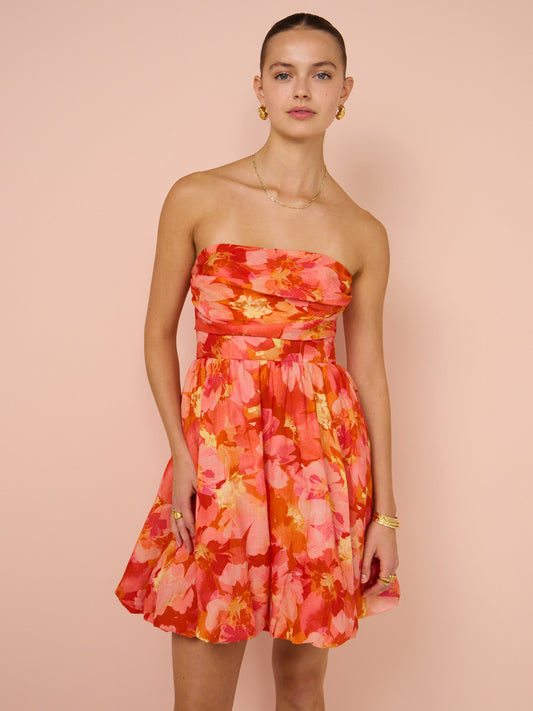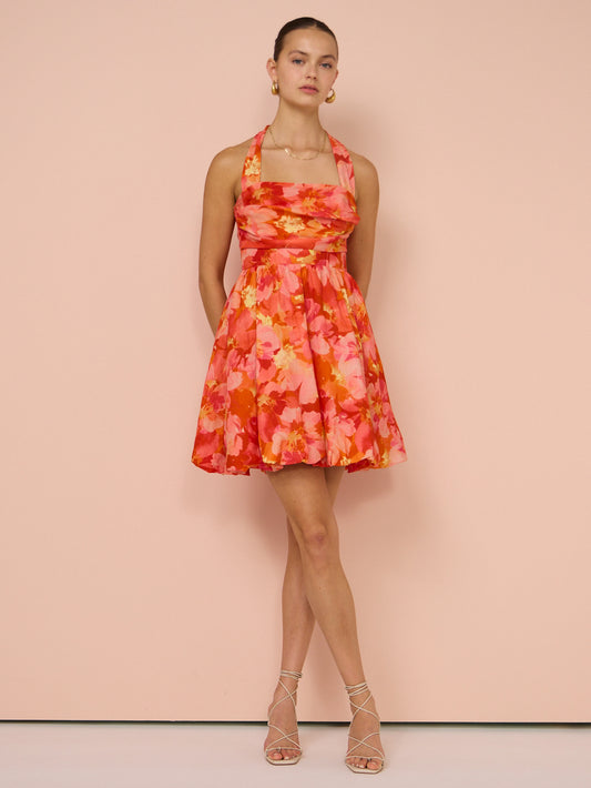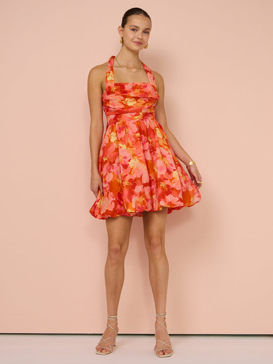 Sofia The Label Amara Bubble Mini Dress in Red & Pink Floral