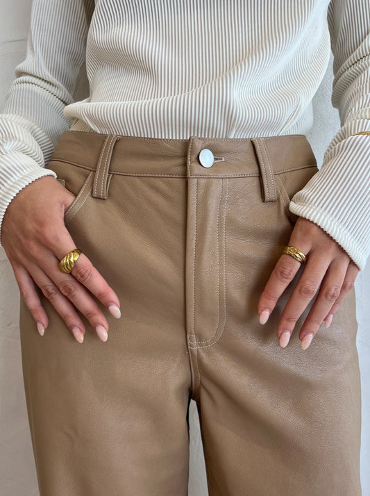 Introducing a sophisticated and transeasonal piece, the Sovere Asend Pu Pant in Praline.