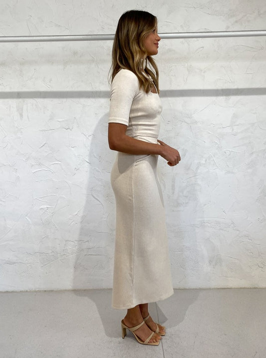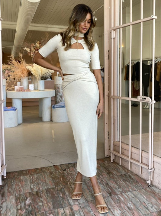 We adore the wear on repeat Blink Twist Midi Skirt in Almond from Sovere.