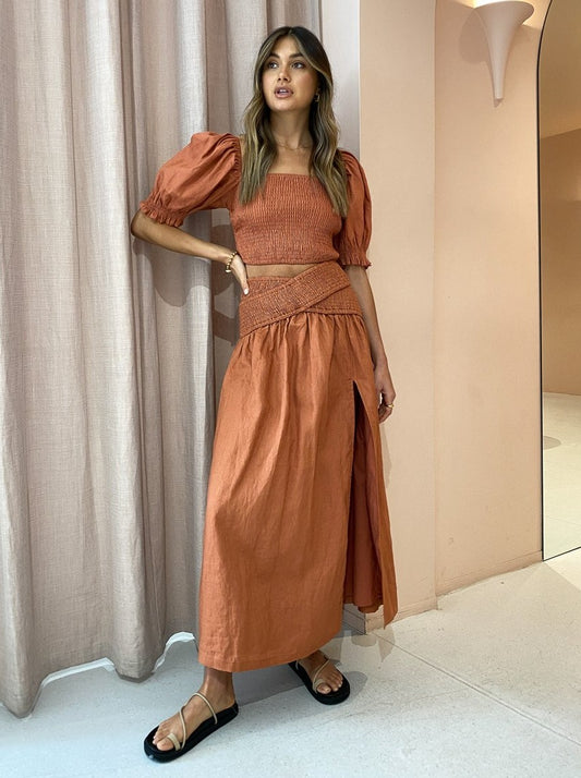 For those winery getaways complete with the matching Sovere Bounty Midi Skirt in Clay.