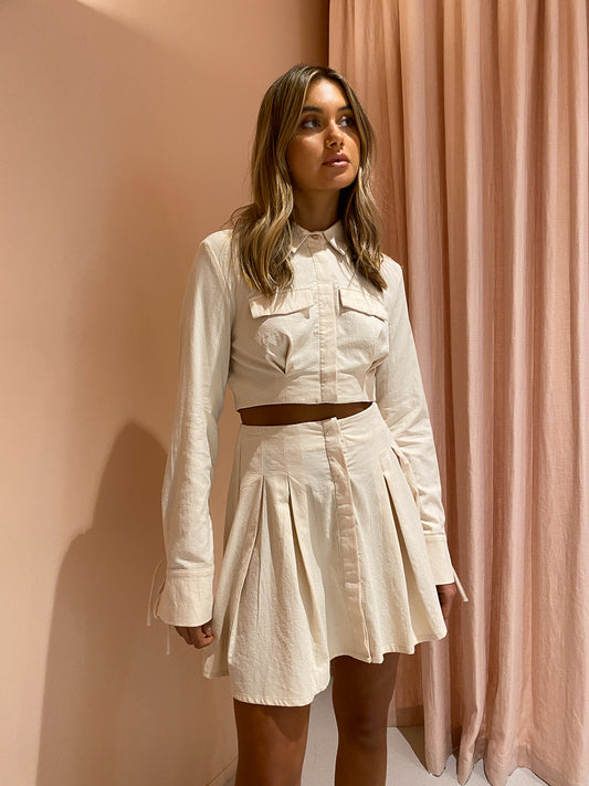 Tone it back in the Revere Crop Shirt in Parchment by Sovere Studio