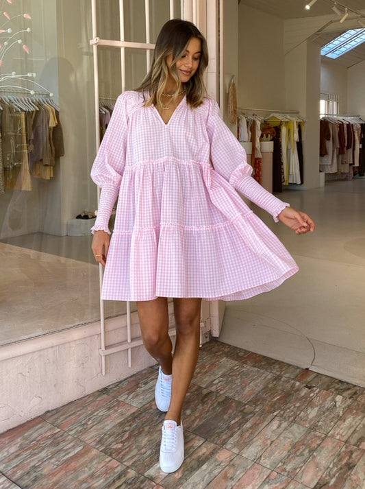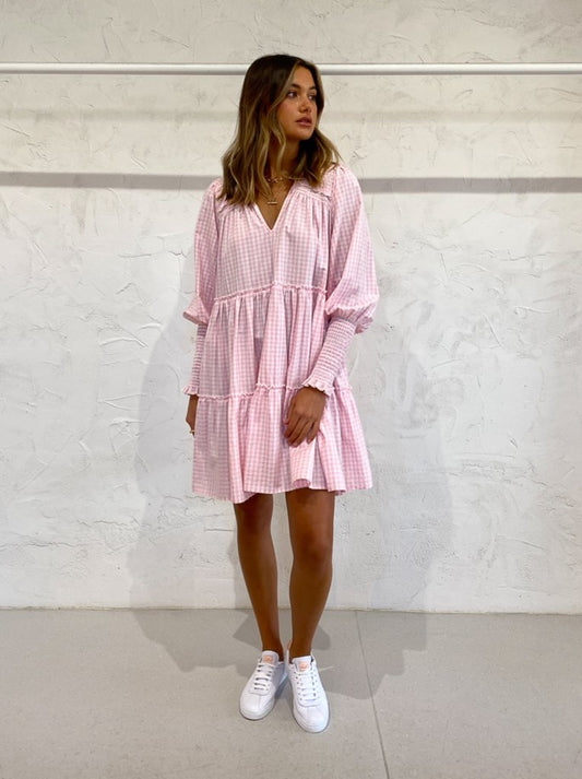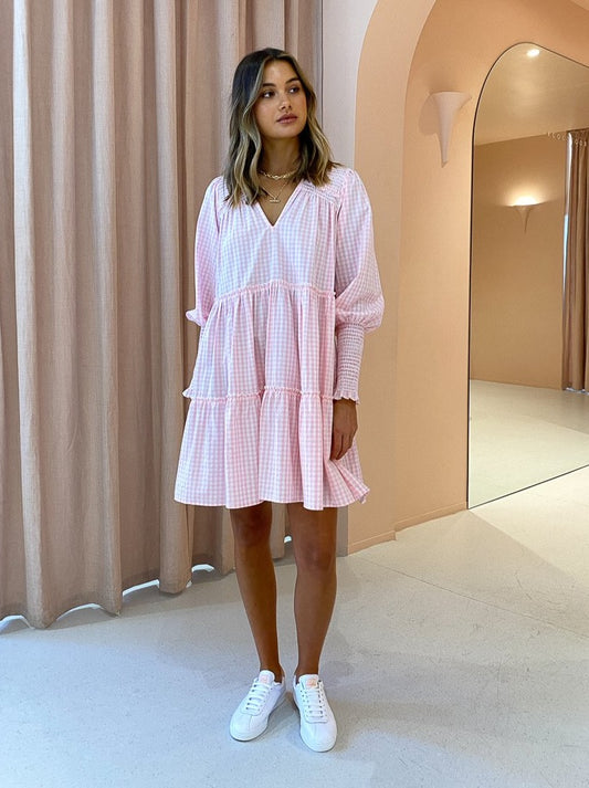 The Steele Anika Dress in Blush Check is a Coco Exclusive and a must have for the festive season.