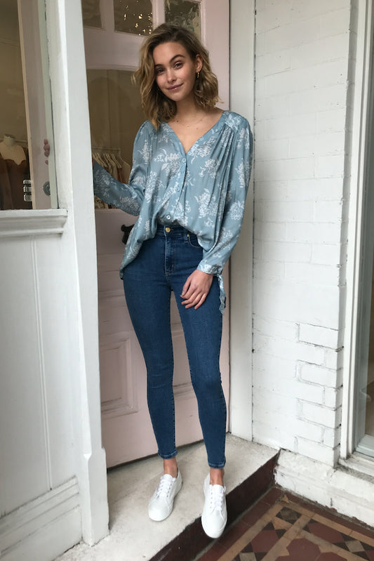 The Steele Maya blouse is a Coco HQ favourite. Crafted from a printed viscose blend, the Maya blouse features centre front button openings,full length sleeves with tie cuff detail and a V neckline.