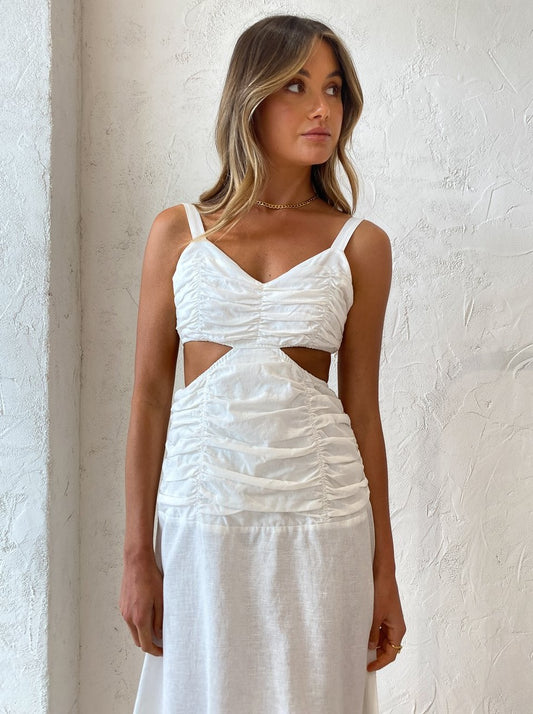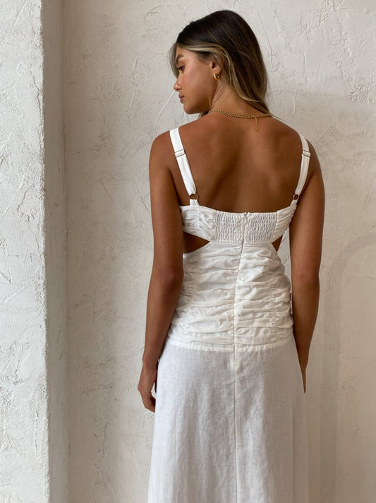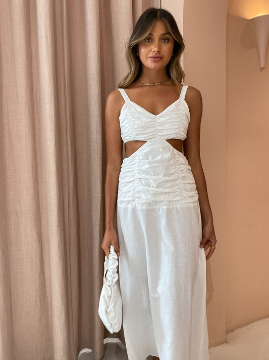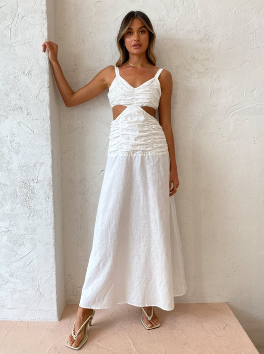 Life's special moments are to be celebrated in the elegantly modern Aster Cut Out Maxi Dress in White by Suboo.