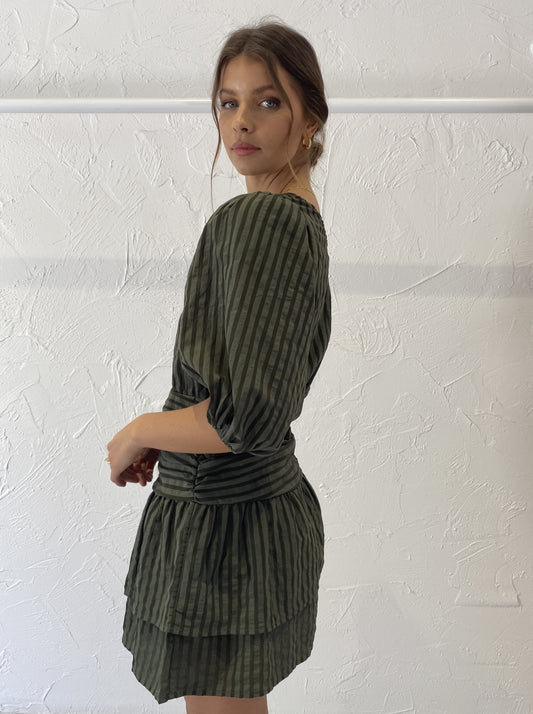 Featuring a balloon sleeve, ruffle hemming and dropped waist for ultimate comfort and shape, this will take you from winery tours to birthday lunches and holiday getaways.