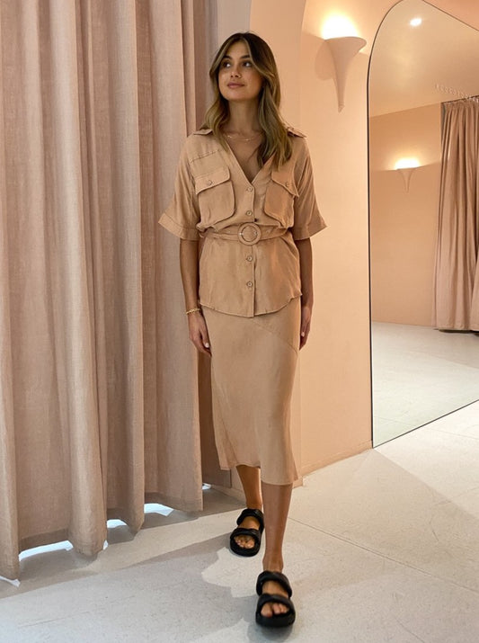 The Suboo EXCLUSIVE Shirt in Peach is a timeless vintage inspired neutral shirt for your on repeat wardrobe.