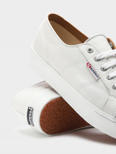 A Coco girl favourite. The Superga 2730 Cotu Nappa Leather sneaker in White features a classic 2730 with tennis shoe design and chic platform of 3cm.