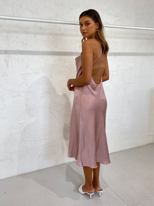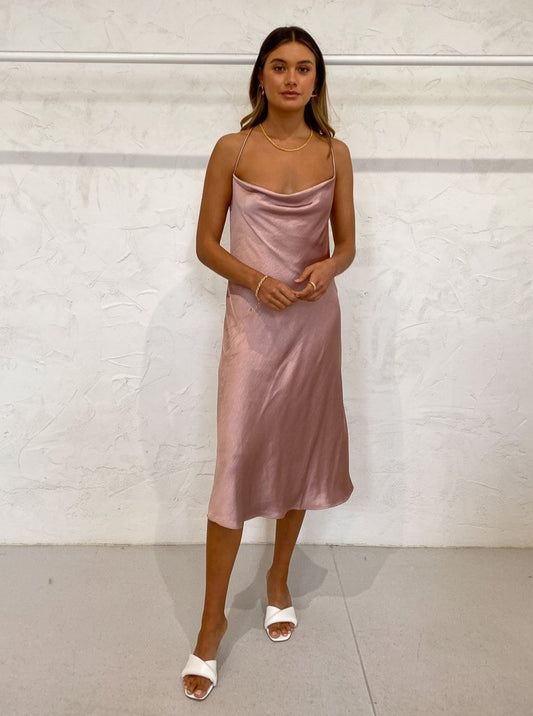 Third Form Cross Back Cowl Bias Slip Midi Dress in Blush