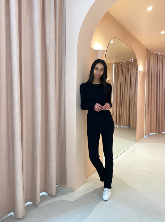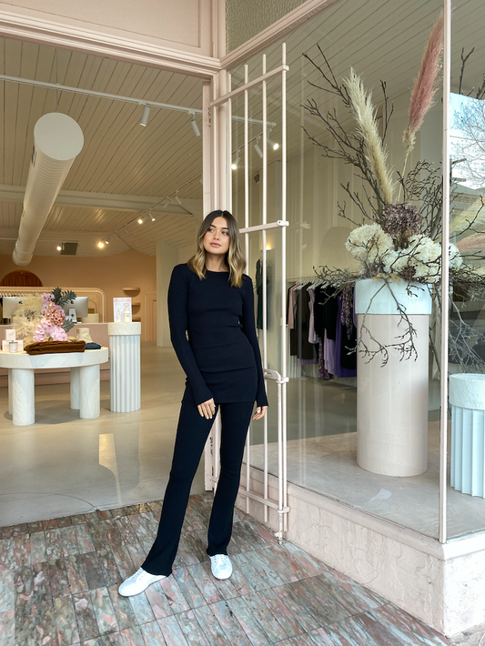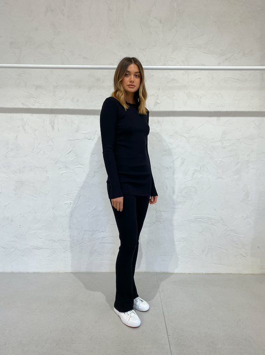 The Long Lines Knit LS Top in light-mid weight ribbed knit provides stretch so ideal for everyday and every occasion wear; team back with the Long Lines knit rib Flare for a forward yet relaxed Winter look.