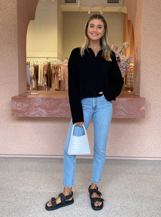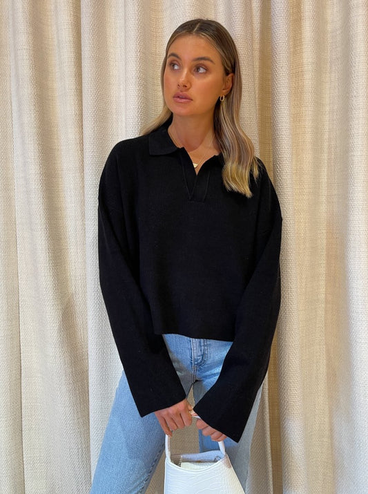 Elevate your essential black knitwear with the Third Form Oversized Collared Knit in Black.