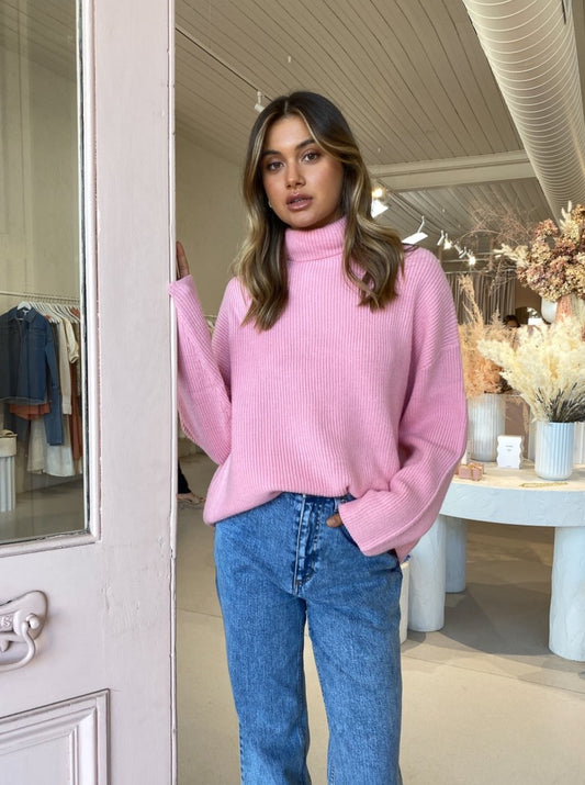 Coco girls are wearing this delicious bubblegum pink knit on repeat, layered over denim for Sunday brunch or silk skirts for long lunches.
