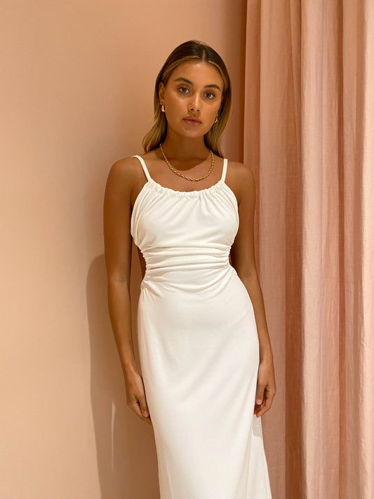 The Third Form Pull In Midi Dress in Off White takes on a fresh approach to your classic midi dress.