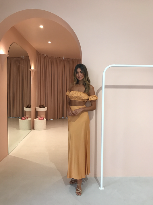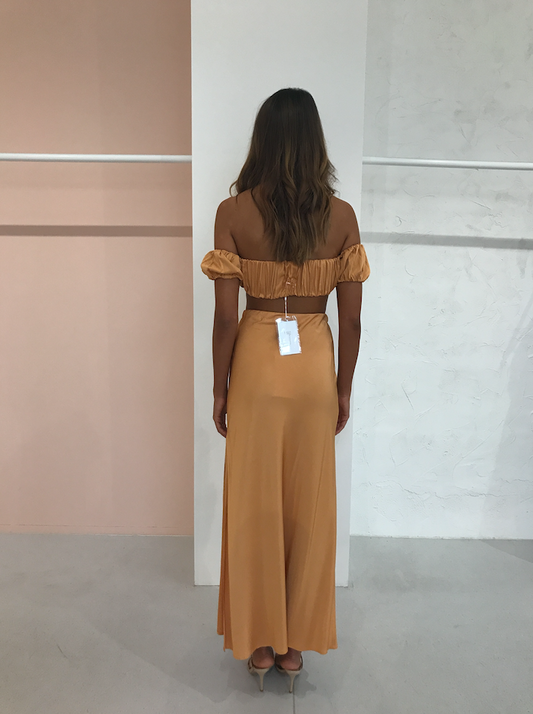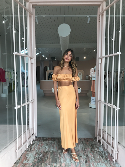 The Romancer Bias Maxi Skirt your go-to maxi skirt for the season, cut on the bias for a flattering fit, featuring a deep side split for movement, this piece is where style meets comfort. Pair it with the Romancer Gathered Bandeau to elevate the look, or dress it down with your favorite tee.